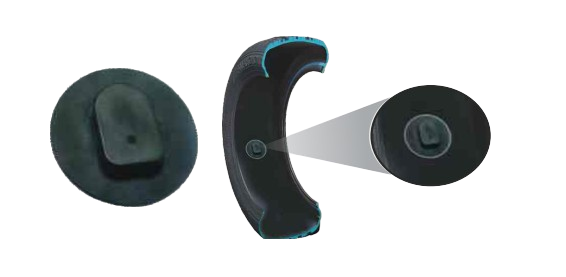 Rubber-encased sensor glued to the tyre’s inner lining.